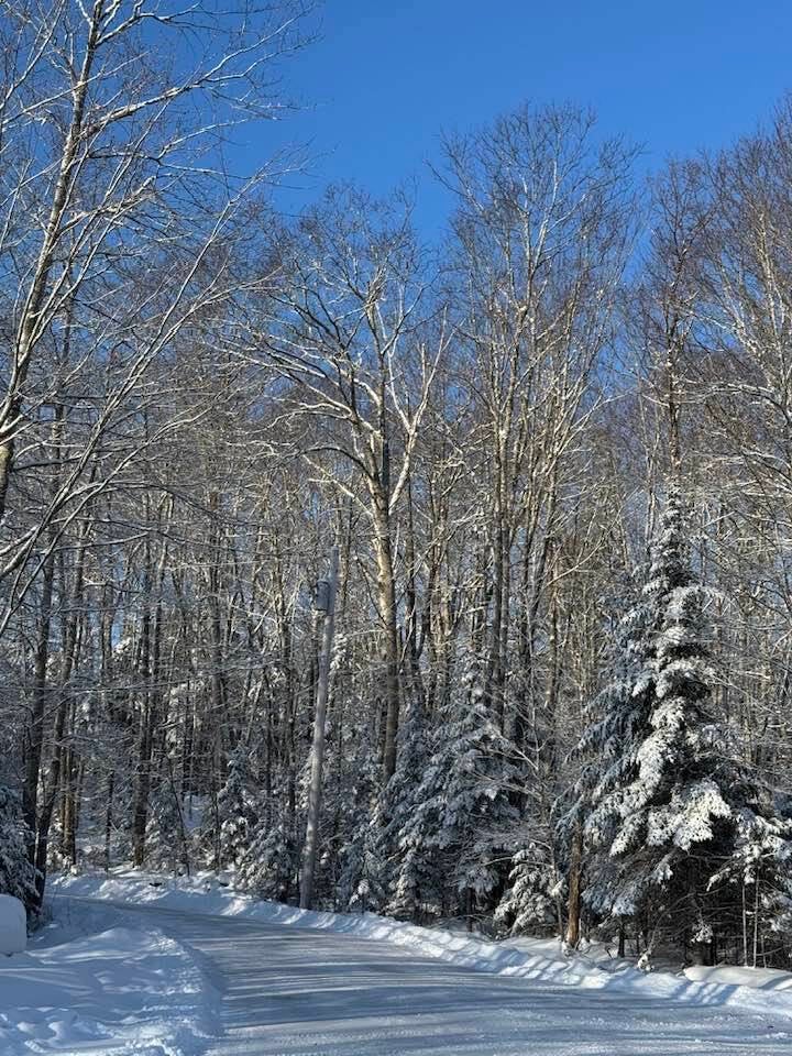 Overnight the landscape did not change. Mariah did not visit. There are no hoof prints in the snow, no birds are heard, not even the red squirrel is seen. Snow is not falling. Sun draws designs on the fern, on the plaster woman, reaches for some books. Is Soleil interested in art? In Brilliant Beginnings, The Art of Perspective, The Complete Printmaker, or are they just the books she can reach? Ruger lays his head on ancient music books moved so I could dust the table. Zayne sits close to my chair until I stop petting, then he stands over Ruger willing him to move. Discouraged, he noses shelves of poetry. Zsolt, legs outstretched, sleeps under my desk.