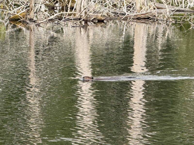 The sky, an expanse of silver-grey; tinge of blue perhaps an apparition above some trees. Shrinking, the stream does not move, is not green. Chris indicated lakes, ponds where they fished, hiked yesterday were low; some fish stranded in puddles as water evaporated. A beaver unamused by humans slapped his tail. Wild disturbed, I’ve seen no beaver. The crane absent for months.