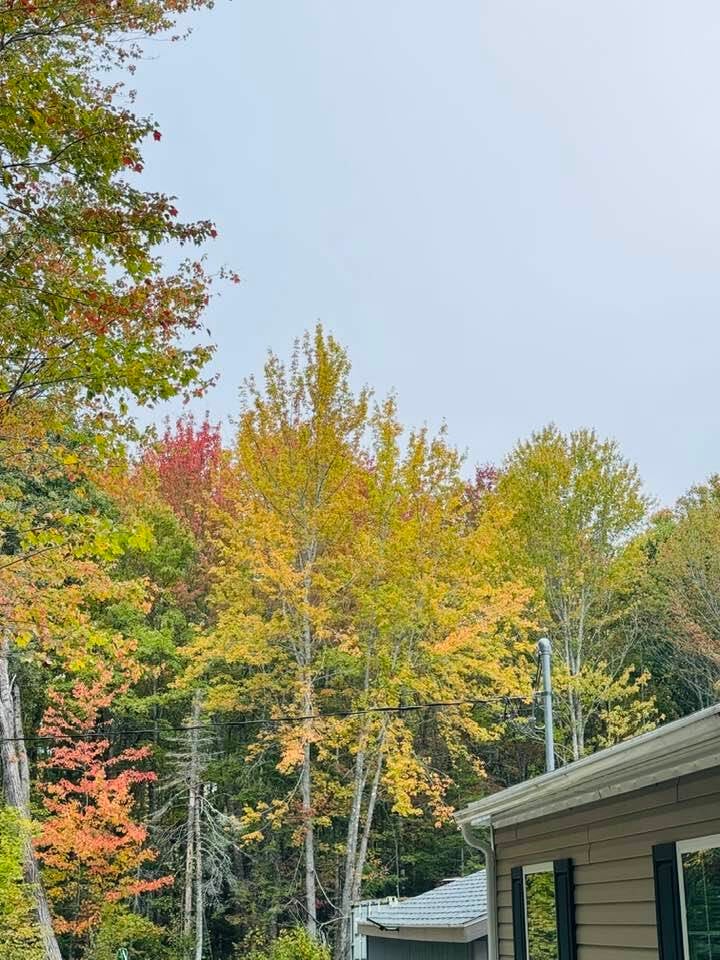 I leave the three outside, sliding door open go blow leaves off the front deck; they follow the noise, noses painting the latched glass door when they find me. Golds, reds, greens unseen from this perspective last year. I scrape cream cheese frosting from the plate, gather walnuts fallen from carrot cake. Sip hazelnut from my sunshine cup.