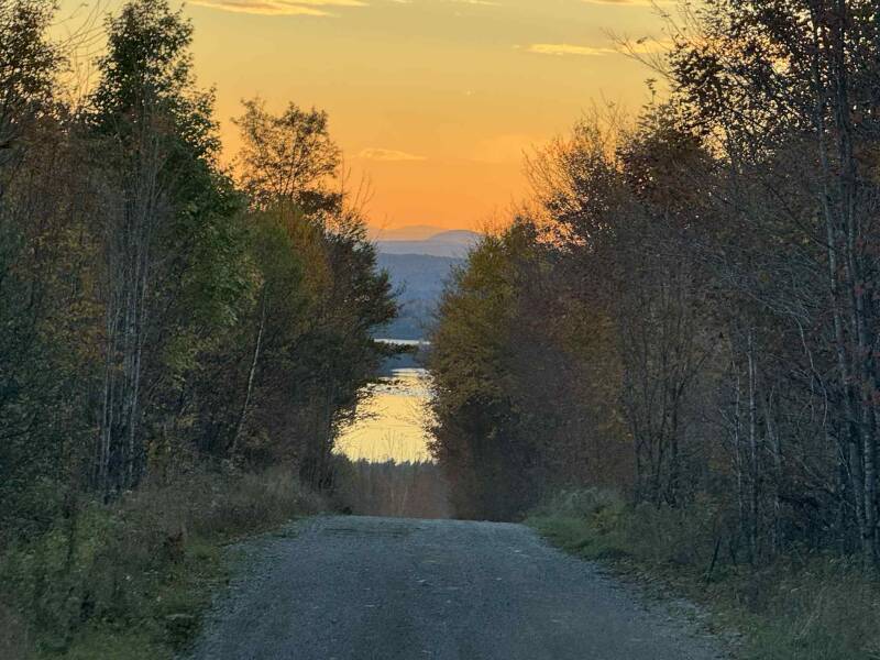 I have to stop going outside with the dogs leaving the door open after I’ve turned the heat on. Eyes adjusting to darkness, I lean against the railing, find the shape-shifting moon no longer round. No clouds this morning. Orange rises behind the tangle of limbs on the horizon seeps into a band of white lying beside gray. Traffic noise. Coffee cooling, heated jacket warming.