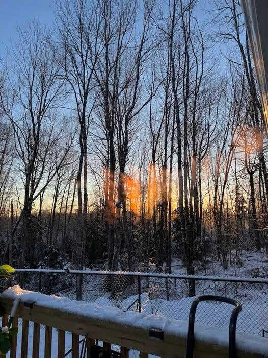 Soleil captures vapor, breath of furnace, in orange rays. Coffee hot in red cup, not just water, like yesterday. Only the three move in the fenced-in-land. I stand behind glass to let them in. Frigid air elicits coughing calls forth wheezing. How many vehicles refused to take people somewhere today?