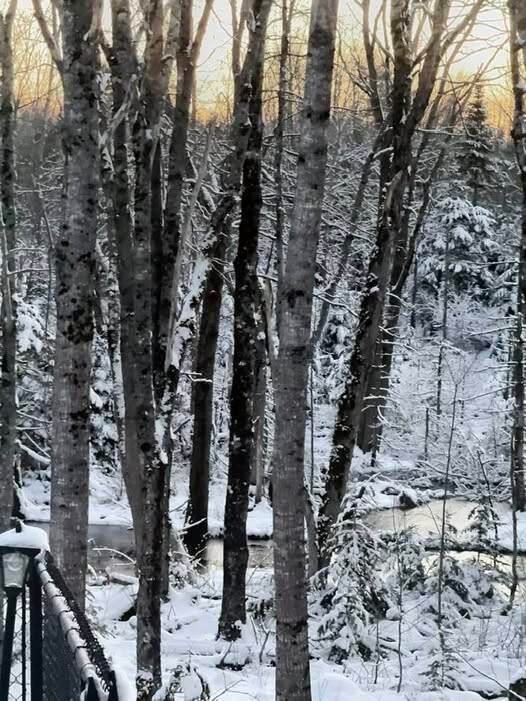 Lights follow the three through fenced-in land. No feet sink into crunchy snow. Frost on cars, chain links, tractor. All is quiet. Morning turns up her light. We gather in the kitchen for biscuits, for coffee. The three return to sleep.